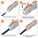 - SPACE-SAVING & MONEY-SAVING: These lever wire connectors, due to their compact design and inline construction, are ideal for use in confined spaces and challenging locations that are difficult to access. Created using environmentally conscious materials, the connectors can be reused repeatedly, resulting in reduced waste and cost savings for you.