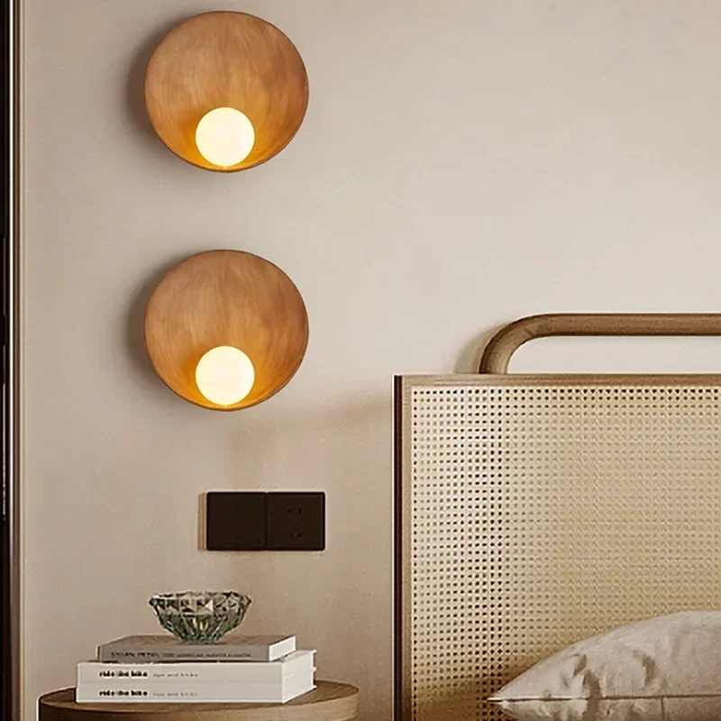 Home Indoor Lighting Wall Lamp Chinese Style White Brown Shell Wall Lamp Japanese Creative LED Lighting Homestay Bedroom Corridor Resin Wall-mounted Sconces