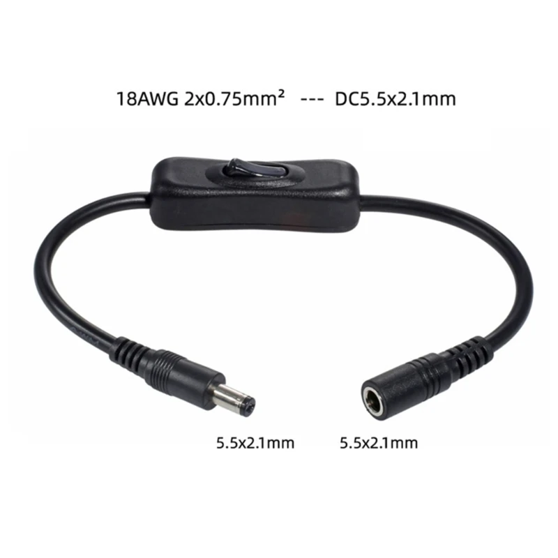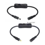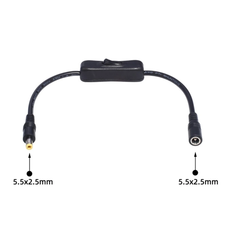This DC power extension cable with switches is compatible for both 5.5×2.1mm and 5.5×2.5mm connectors, making it versatile for use with various devices such as external hard drives, laptops, projectors, attendance machines, and routers. <br/>