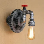 Industry Vintage Lamp Retro Loft Iron Wood Gear Wheel Wall Light Study Showroom Living Room