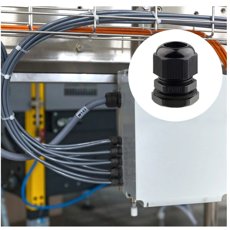 Cable fixation. Another key function of this product is to stabilize the cable and preventit from loosening or being damaged due to vibration, pulling or twisting. The nylon water-proof connector is designed with a clamping claw or locking nut inside. By tightening thelocking nut, the clamping claw will firmly grasp the cable, thereby providing a stablefixing effect. This is essential for applications such as mechanical equipment, automationsystems, and power equipment, and can effectively reduce problems such as short circuits,poor contact or cable breakage caused by loose cables.