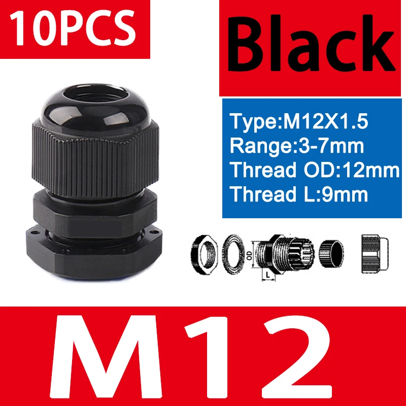 Package Content :1 x Cable Gland Packing list=10PCS Black Waterproof Cable Gland