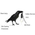 Raven Table Lamp has extremely bright G-45 bulbs, Both striking and distinctive, this unique wall lamp will add a charming twist to your current lighting collection.Crow light can sit anywhere in your home. Just like pets always accompany you
