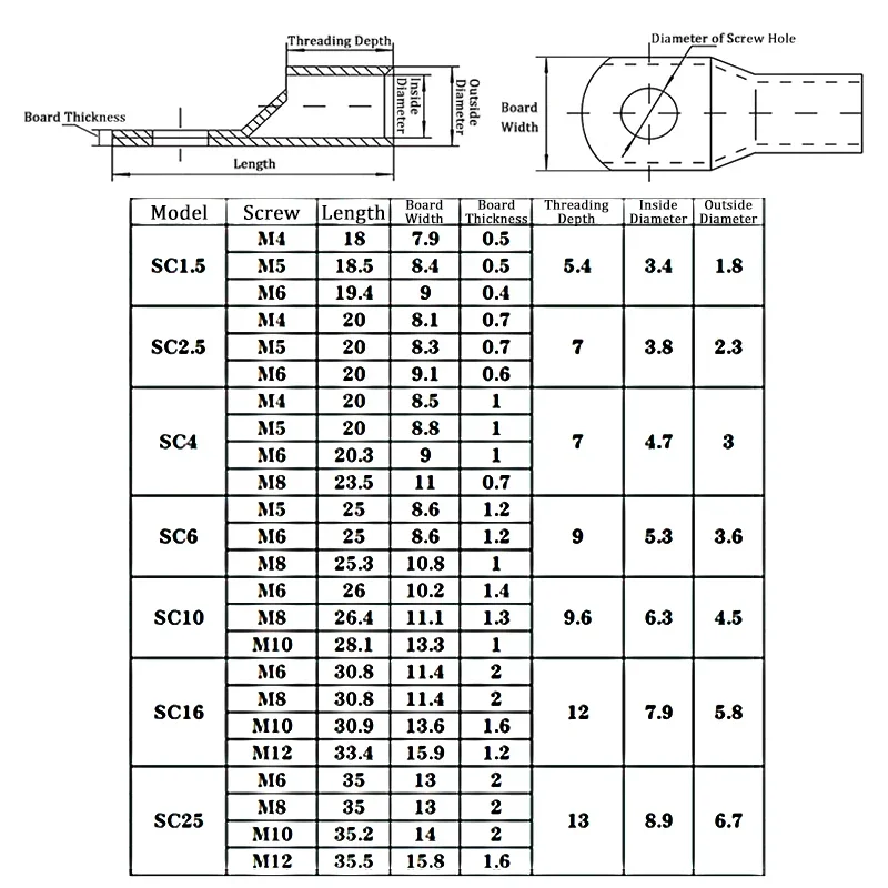 Home Wire Connector Copper terminal SC Nose Terminal Copper Wire Lugs Ring Bare Cable Electric Crimp