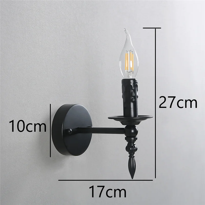 Vintage Iron Art Wall Lamps Black LED Wall Lights American Retro Loft Sconces Light Fixtures Bed Candle Simple Small Wall Lamp